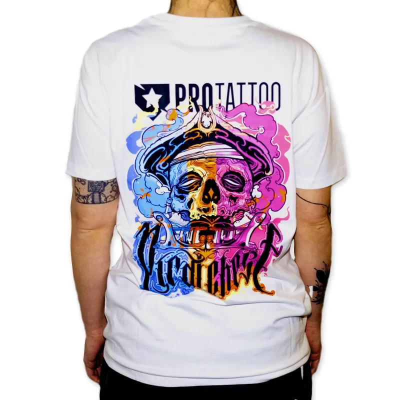 Превключете към РЕЖИМ МАСТИЛО. Нашата нова текстилна марка със собствен мотив за всички любители на татуировки. Както и при другите продукти на Pro Tattoo, можете да разчитате на най-високо качество и оригиналност с тези тениски. Ръчно рисуваният мотив е създаден от дългогодишния татуист и експерт в света на татуировките Игор от студиото за татуировки Energy Ink. Всеки мотив е редактиран до последния детайл и отпечатан с помощта на DTF технология с дълготрайни щампи, без да губи цвета си. Печатаме мотиви върху тениски SOL'S Imperial 190.