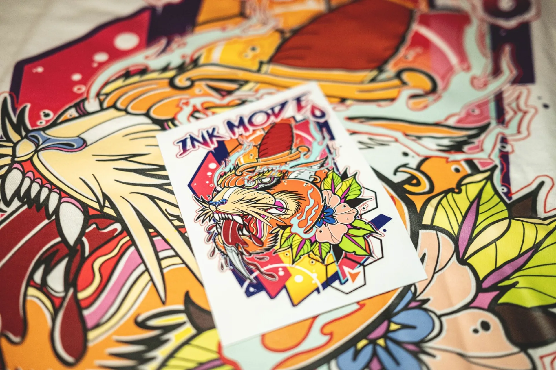 • Всяка тениска се предлага с рисуван стикер с идентичен мотив