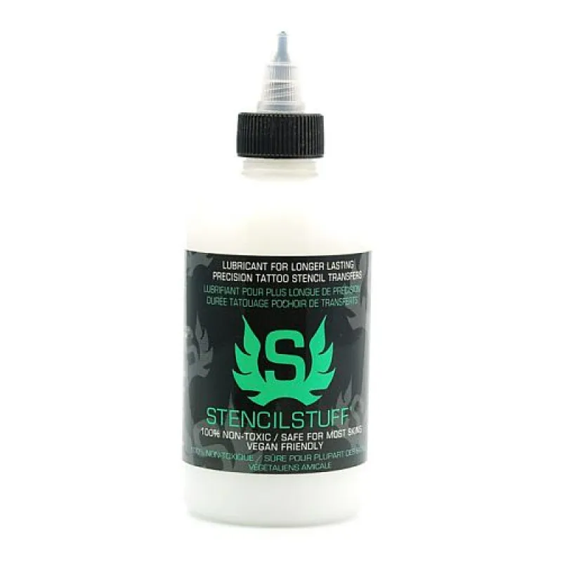 STENCIL STUFF е гел за прехвърляне на мотиви, който осигурява траен отпечатък по време на целия процес на татуиране. Stencil Stuff е произведен в САЩ и е сертифициран за употреба в целия ЕС. За разлика от течните трансферни течности, Stencil Stuff има гелообразна консистенция и се нанася в малки количества. В обикновено студио за татуировки, големите опаковки ще издържат до 3 месеца! Stencil Stuff може да се използва с всякакъв вид хартия.