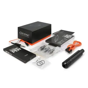 Писалката Cheyenne PEN се доставя с дръжка с диаметър 25 мм, която може да се завърта, за да се регулира удължението на иглата от 0 до 4,5 мм. Устройството се захранва чрез 3,5 мм кабел, който е включен в комплекта. Пакетът включва и адаптер за 6,3 мм жак конектор за свързване към стандартни източници с този вход.