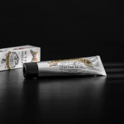 Дълбоко хидратиращ мехлем за татуировки на маслена основа. Успокоява и защитава деликатната кожа. Поради гъстата си консистенция, той е най-подходящ за по-малки татуировки. Измийте добре ръцете си преди нанасяне. Внимателно нанасяйте тънък слой балсам за татуировки 2-3 пъти на ден с леки кръгови движения. Без аромат.