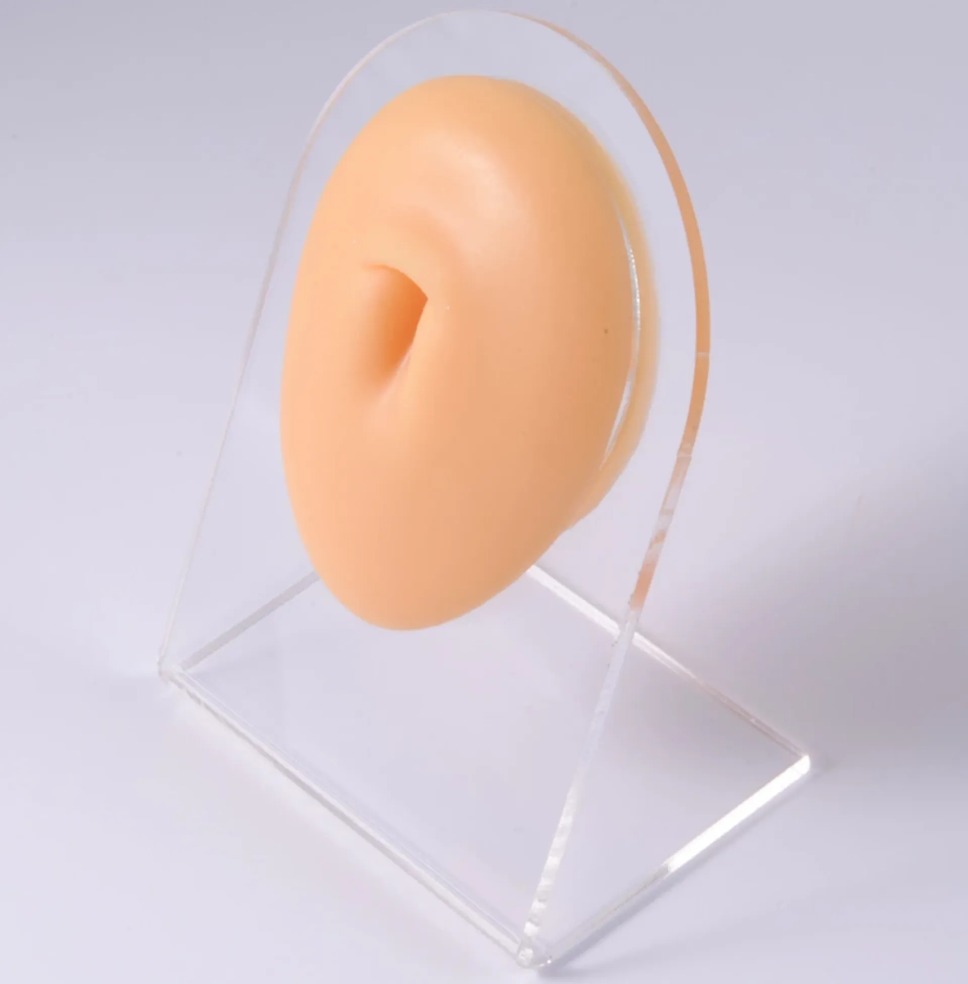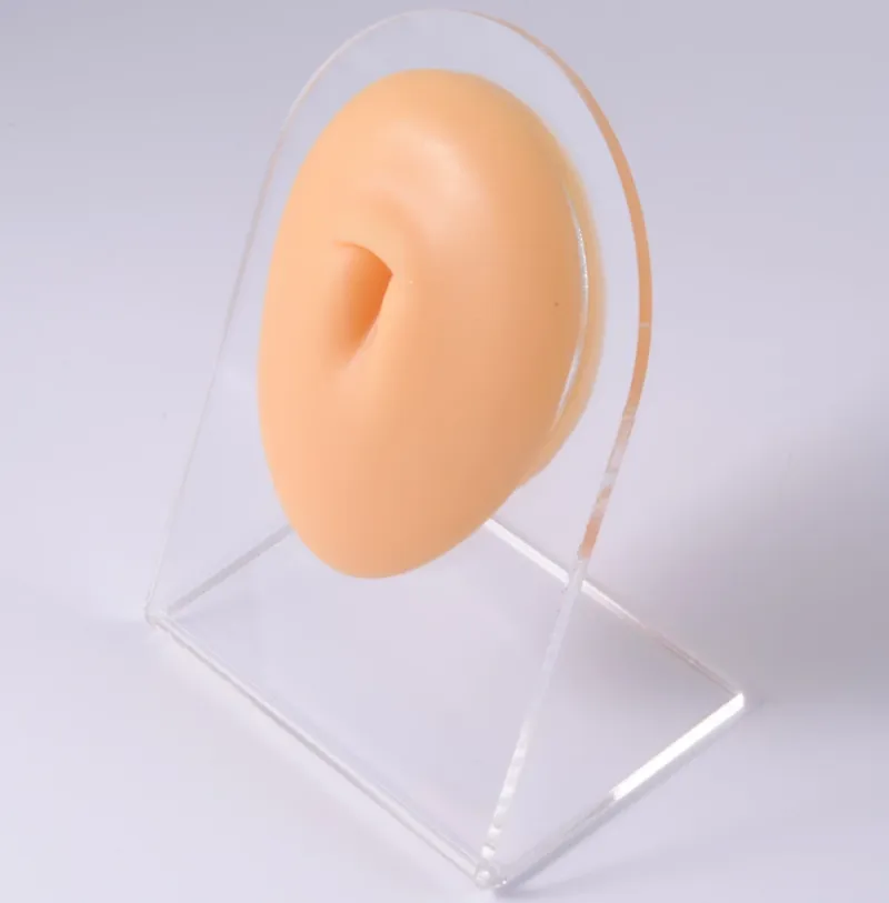 Силиконовият пъп е подходящ за обучение по пиърсинг. След това можете да го използвате като допълнение към вашето студио, което със сигурност ще впечатли всеки посетител. Доставя се и с практична стойка.