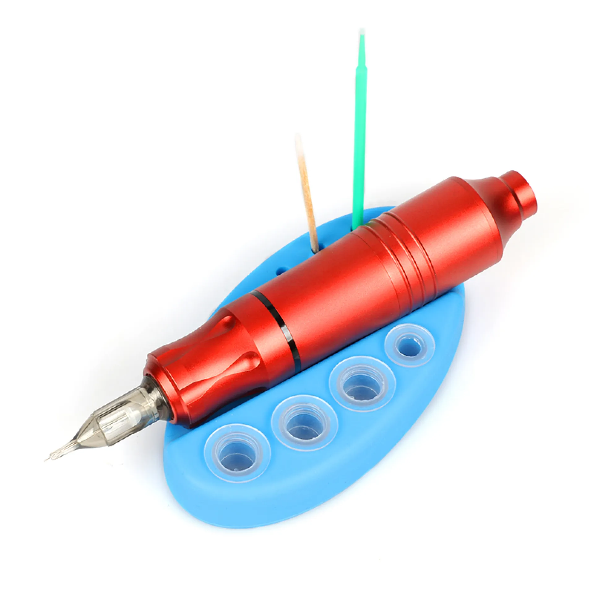 Универсална стойка, на която можете да съхранявате машината, четири чашки за пигмент, както и писалка за микроблейдинг или микроапликатори. Предимството е материалът, от който е изработена основата. Благодарение на мекия силикон, иглата няма да се затъпи или огъне при случайно убождане при вземане на пигмент. Предлага се в различни цветове.