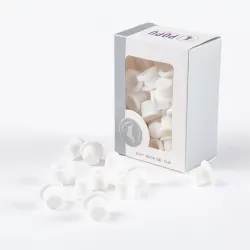 Капачките за мастило са изработени от мек силикон, така че не е нужно да се притеснявате, че иглата ще се затъпи или повреди, ако случайно влезе в контакт със стената им. Те са опаковани нестерилно и препоръчваме дезинфекция със спрей - например Chiroderm - преди употреба. Чашката е подходяща за съхранение в стойка или може да се фиксира с вазелин върху целулозна подложка.