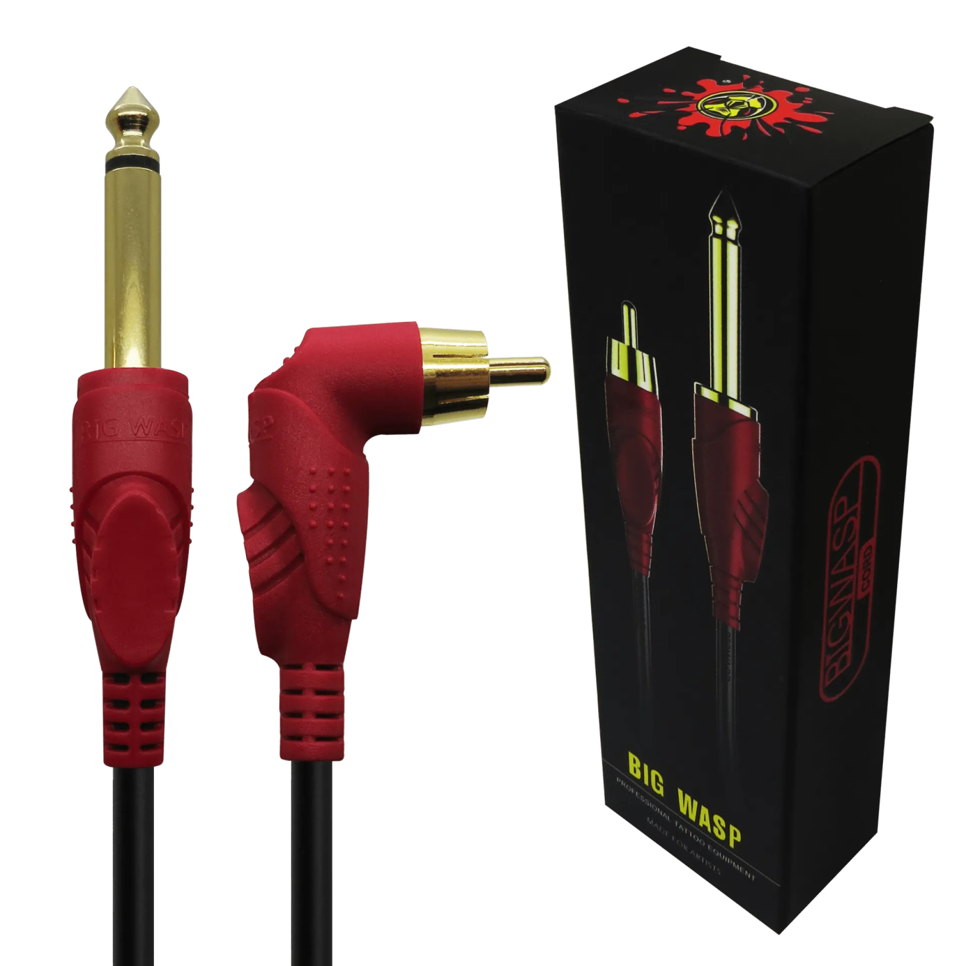 Професионален кабел с RCA конектор за свързване на по-голямата част от устройствата, поддържащи този тип захранване. Краят на кабела е под ъгъл от 90° за по-добро боравене, особено с машини тип PEN. Кабелът използва мед за по-добра проводимост и силикон за по-дълъг живот. Краищата на кабела са формовани, за да се осигури здравина на съединенията при често огъване. Съвместим с всеки източник на захранване за татуировки с 6.3 мм жак вход.