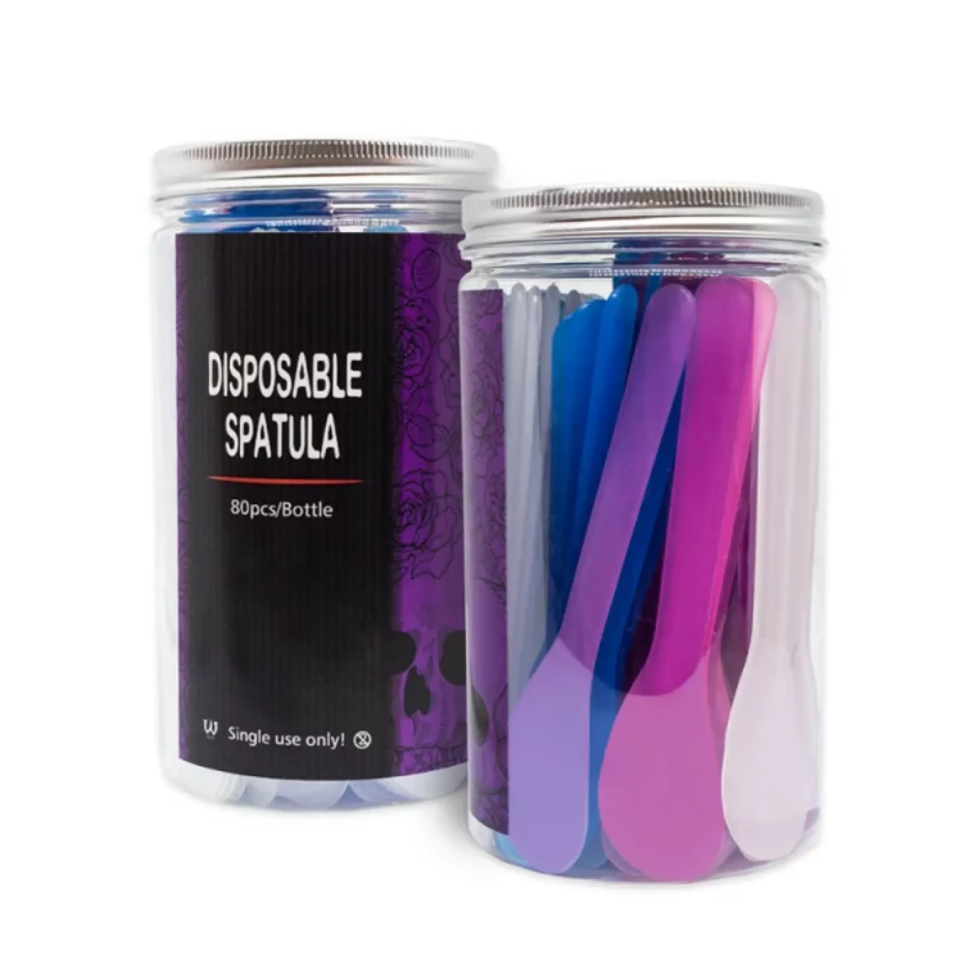 Силиконови шпатули (лопатки) за еднократна употреба, опаковани в плътно затварящ се пластмасов контейнер.