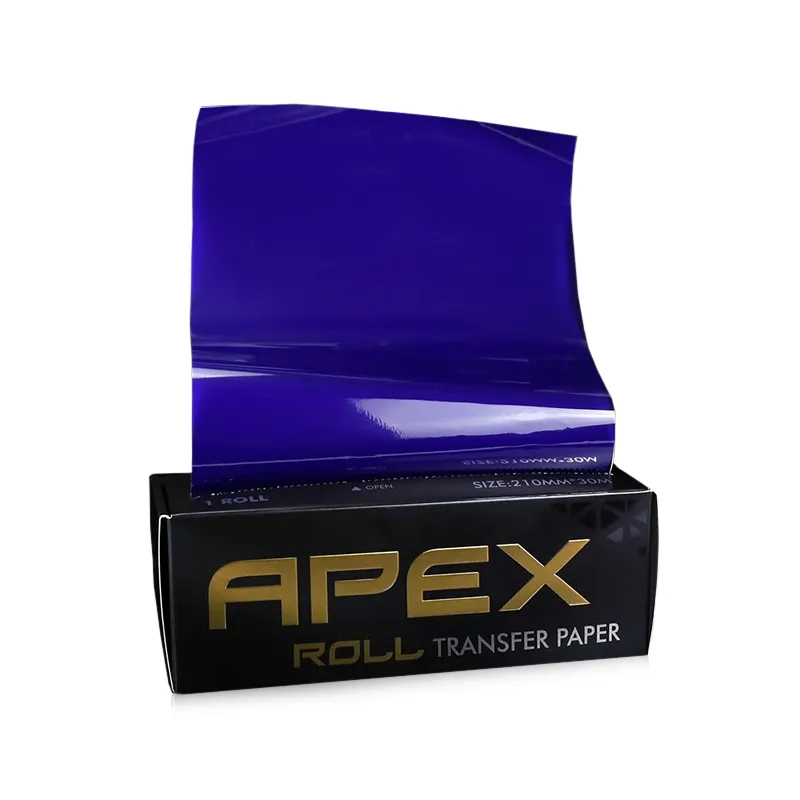 SKULL DNA APEX - ТЕРМОХАРТИЯ на ролка е иновативна хартия, подходяща за термопринтери, която ви позволява да прехвърляте дизайни/мотиви с всякаква дължина, което опростява работата и намалява разхищението на материали. Съдържа висококачествени багрила, които осигуряват дълготрайни, ясни и остри линии, което е идеално за детайли като фини линии и точки. SKULL DNA APEX - ТЕРМОХАРТИЯ е съвместима с повечето термопринтери (SKULL DNA, Brother, OZER, AVA и други) или термокопирни машини.