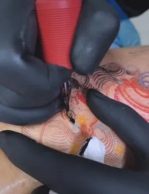 Фолиото е разтворимо във вода, лесно се премахва с вода или зелен сапун, без да оставя следи. Мотивът остава стабилен по време на работа, кожата е защитена, а линиите ясно видими. Това значително улеснява и ускорява процеса на татуиране, като намалява риска от грешки, причинени от разместване или размазване на мотива.