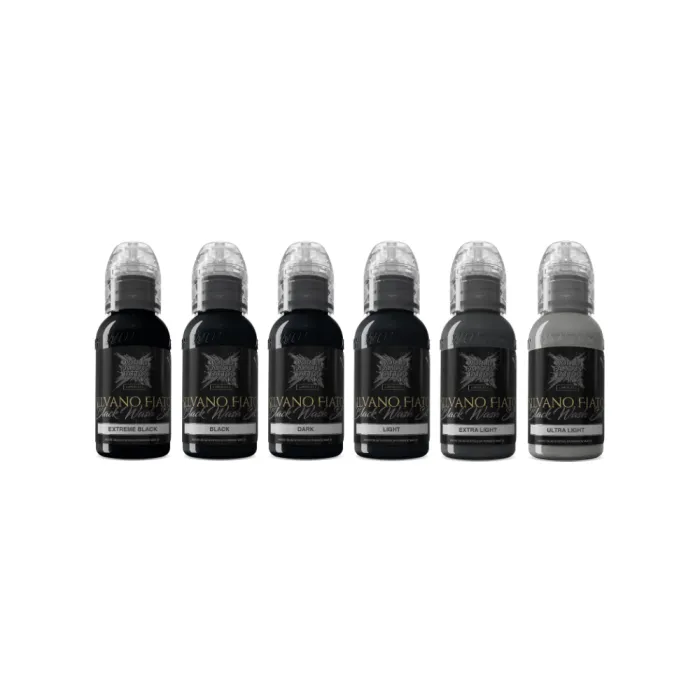 Силвано Фиато, експерт по черно и сиво, е член на World Famous Ink Pro - Team и работи в своето студио Eternal Tattoo. Той с радост сподели таланта си и смеси този перфектен набор от черни татуировъчни цветове.