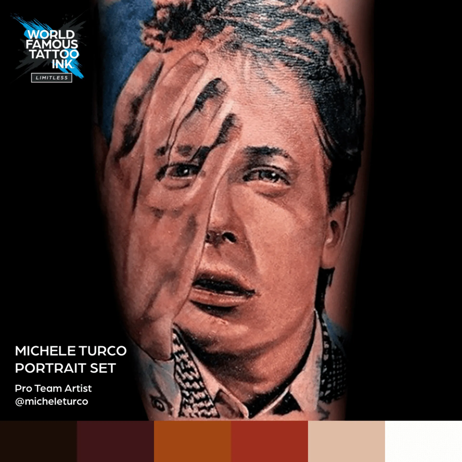 Перфектният набор от нюанси за реалистични портрети, смесени за вас от известния италиански татуист Микеле Турко. Благодарение на този комплект можете да създавате портрети точно както искате, без да е необходимо продължително смесване на нюанси. Всяка бутилка е с обем от 30 мл. Всички нюанси в комплекта отговарят на разпоредбите REACH 2023. Комплектът включва следните нюанси: Light Skin, Medium Skin 1, Medium Skin 2, Dark Skin, Deep Brown a Turco White. Предлага се в пластмасова кутия.