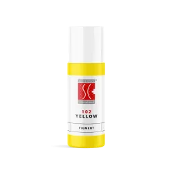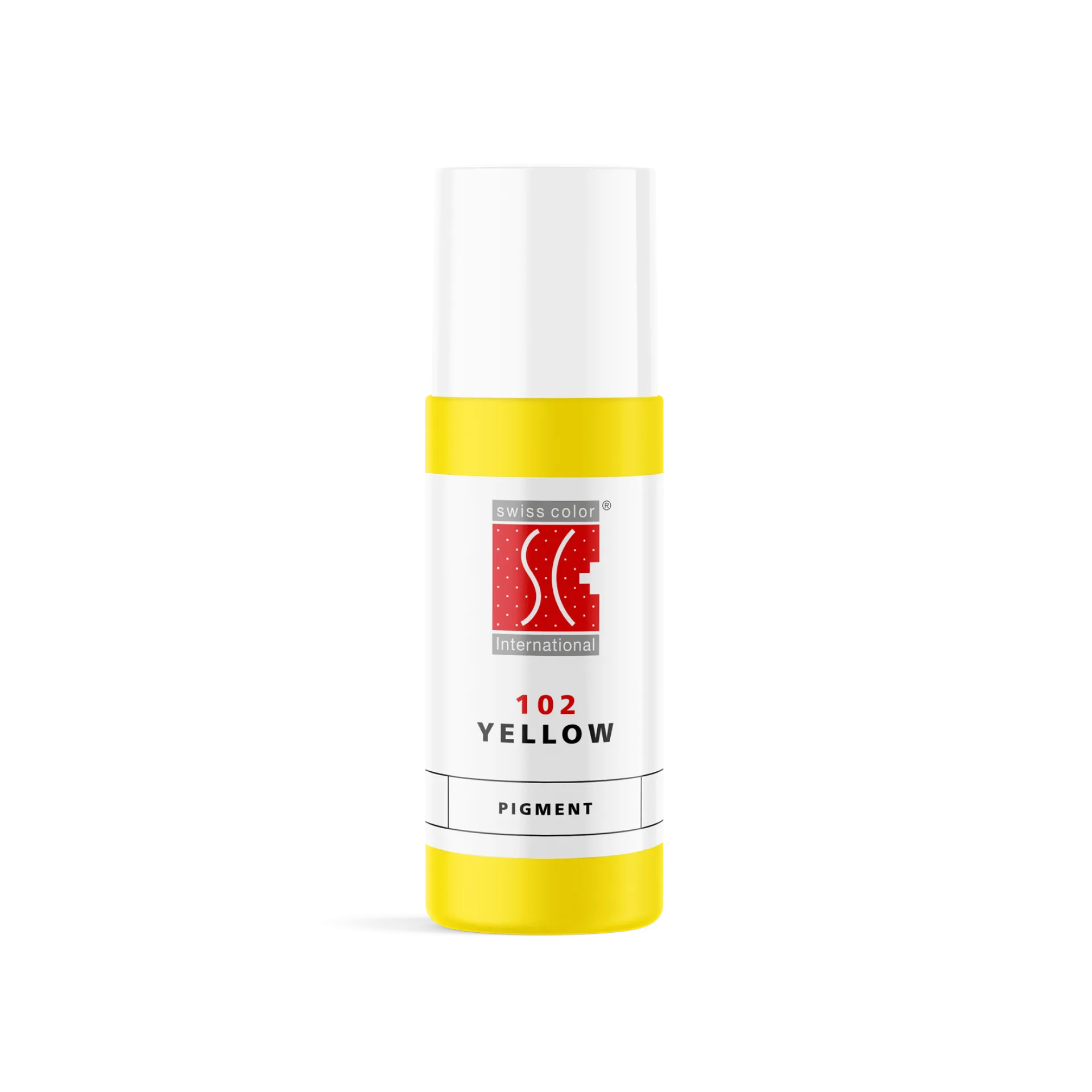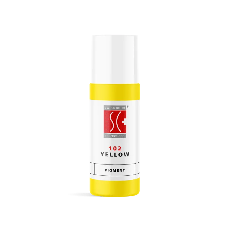 102 Yellow е силно концентриран коригиращ пигмент, който придава интензивност и изразителност на цветните смеси. Използва се в малки количества основно за изсветляване на пигменти за вежди и коригиране на техния подтон. В чист вид е подходящ за корекция на нежелани патладжанени или лилави подтонове на устните чрез фина шейдинг техника. Също така е идеален като добавка към коригиращи смеси при пепеляво-лилава пигментация на веждите. Пигментът помага за неутрализиране на студени и тъмни тонове и създава основа, която позволява по-добро покритие при следваща апликация на пигмент.