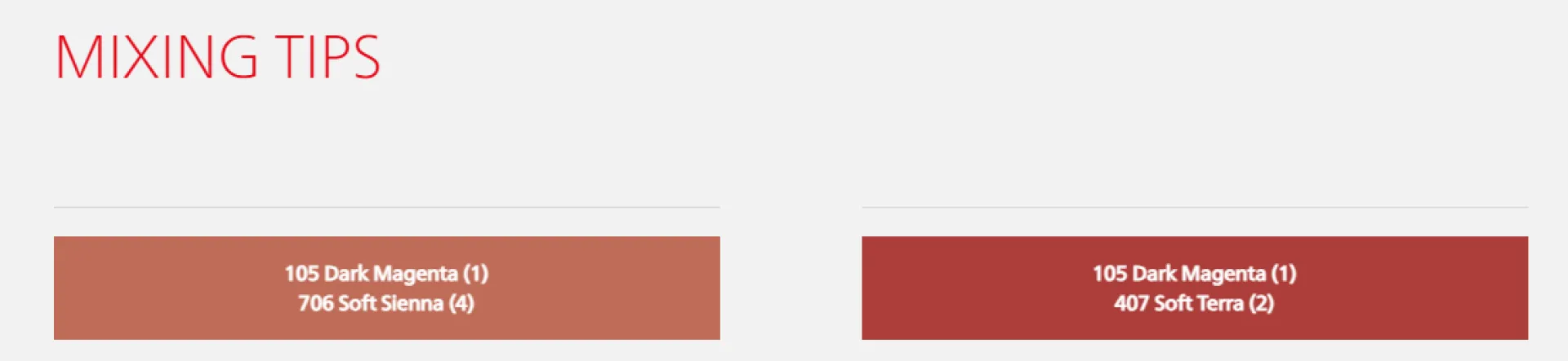 - Създава мек нюанс на кафяво умбра, идеален за пигментация на ареола и устни при средно тъмни до по-тъмни типове кожа: 105 Dark Magenta (1), 706 Soft Sienna (4)