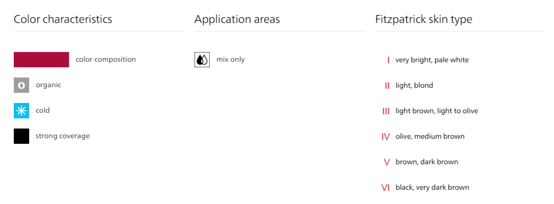 105 Dark Magenta – идеален пигмент за постигане на по-тъмни нюанси, по-студени тонове на устните и фино коригирани цветови тонове при пигментация на ареолата. Поради високата цветова интензивност, дозирането на този пигмент изисква внимание и прецизност. Този пигмент в никакъв случай не трябва да се използва чист. За омекотяване на по-гъстата консистенция на 105 Dark Magenta препоръчваме добавянето на 901 Pigment Solution.