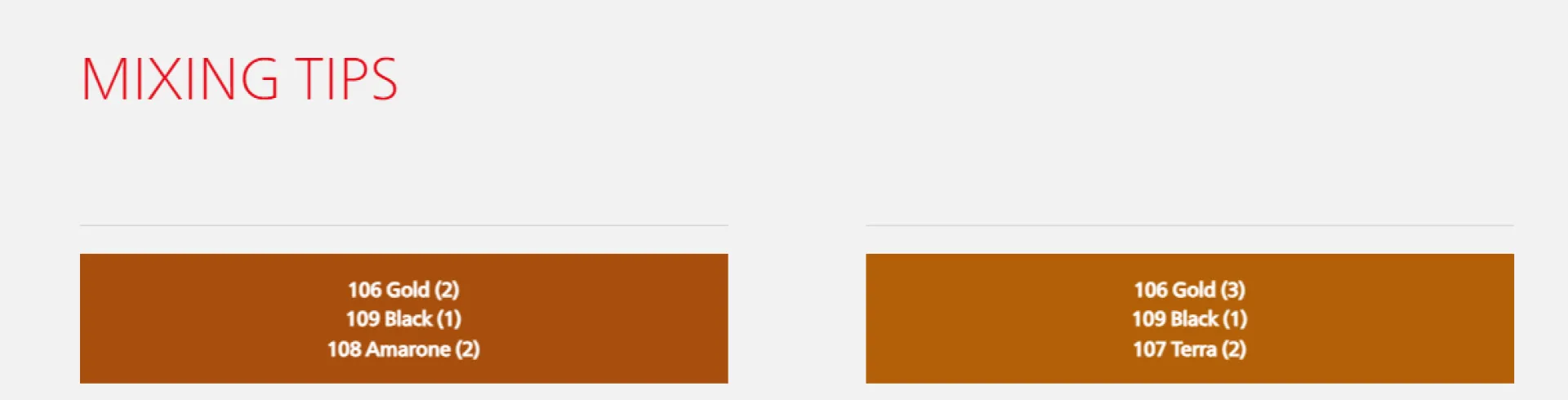 - За по-тъмен средно кафяв нюанс, омекотете и изсветлете с повече 106 Gold: 106 Gold (2), 109 Black (1), 108 Amarone (2)