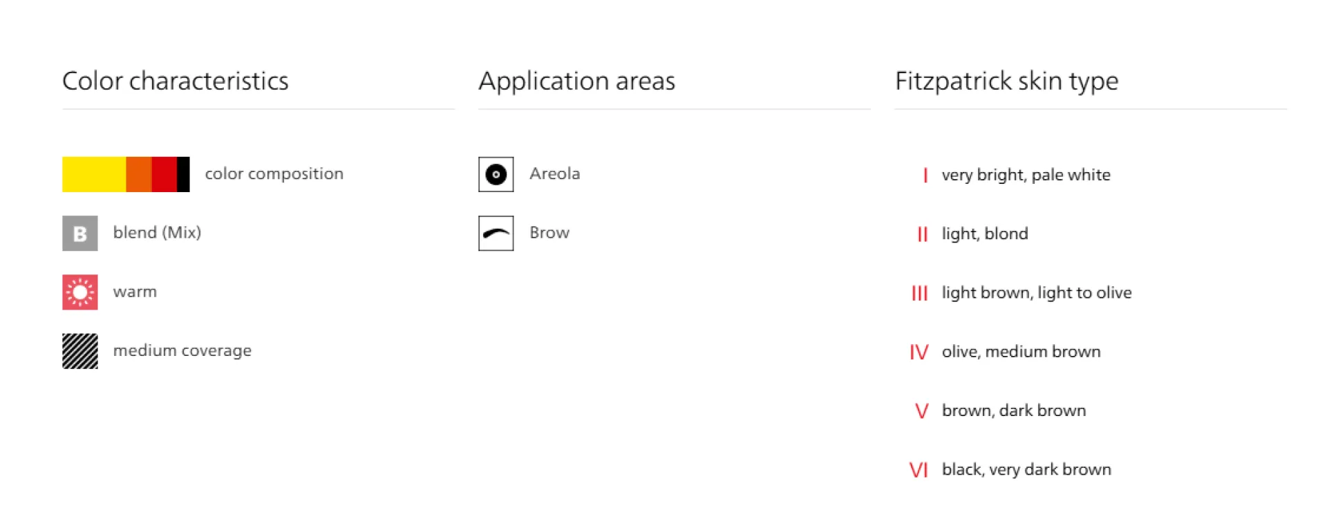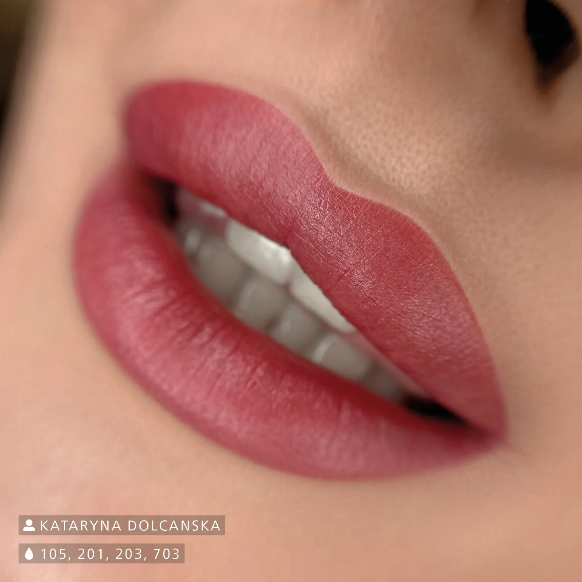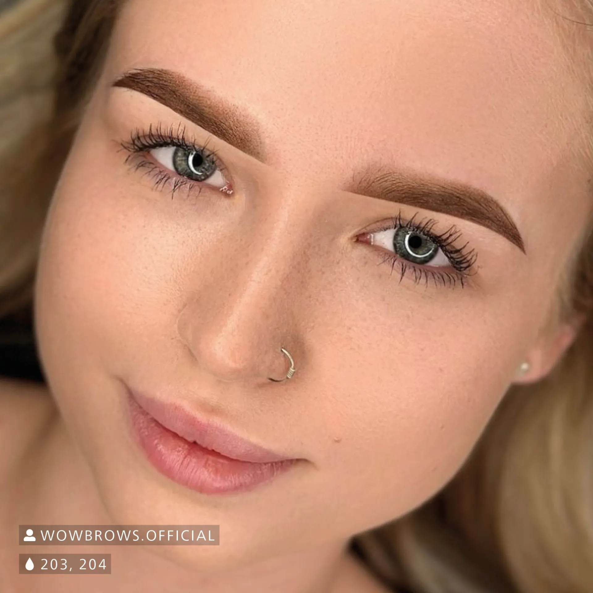 203 Chocolate Brown – придава естествен, хармоничен ефект с оливо-хладен подтон, подходящ за Fitzpatrick типове кожа III–V. На много светла кожа (I–II) може да изглежда твърде топло и червеникаво. Чистият 203 Chocolate Brown е подходящ за корекция на пепеляви нюанси на веждите. За по-тъмен тон добавете 207 Ebony Brown, за по-светъл – 201 Honey Brown. Не използвайте 101 White, цветът ще се измести към прасковено-розов нюанс.