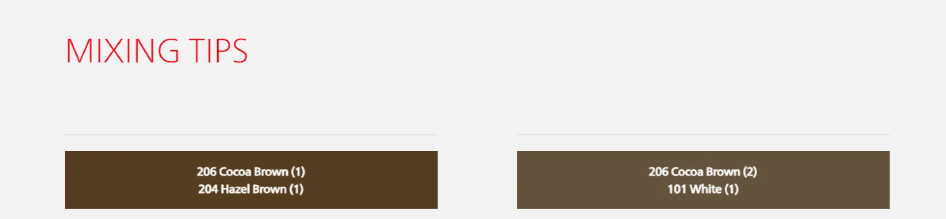 206 Cocoa Brown – Пепеляво-кафяв нюанс с хладен подтон. При използване в чист вид осигурява наситен и естествен резултат. Може да се изсветли и адаптира към цвета на косата чрез добавяне на 201 Honey Brown.