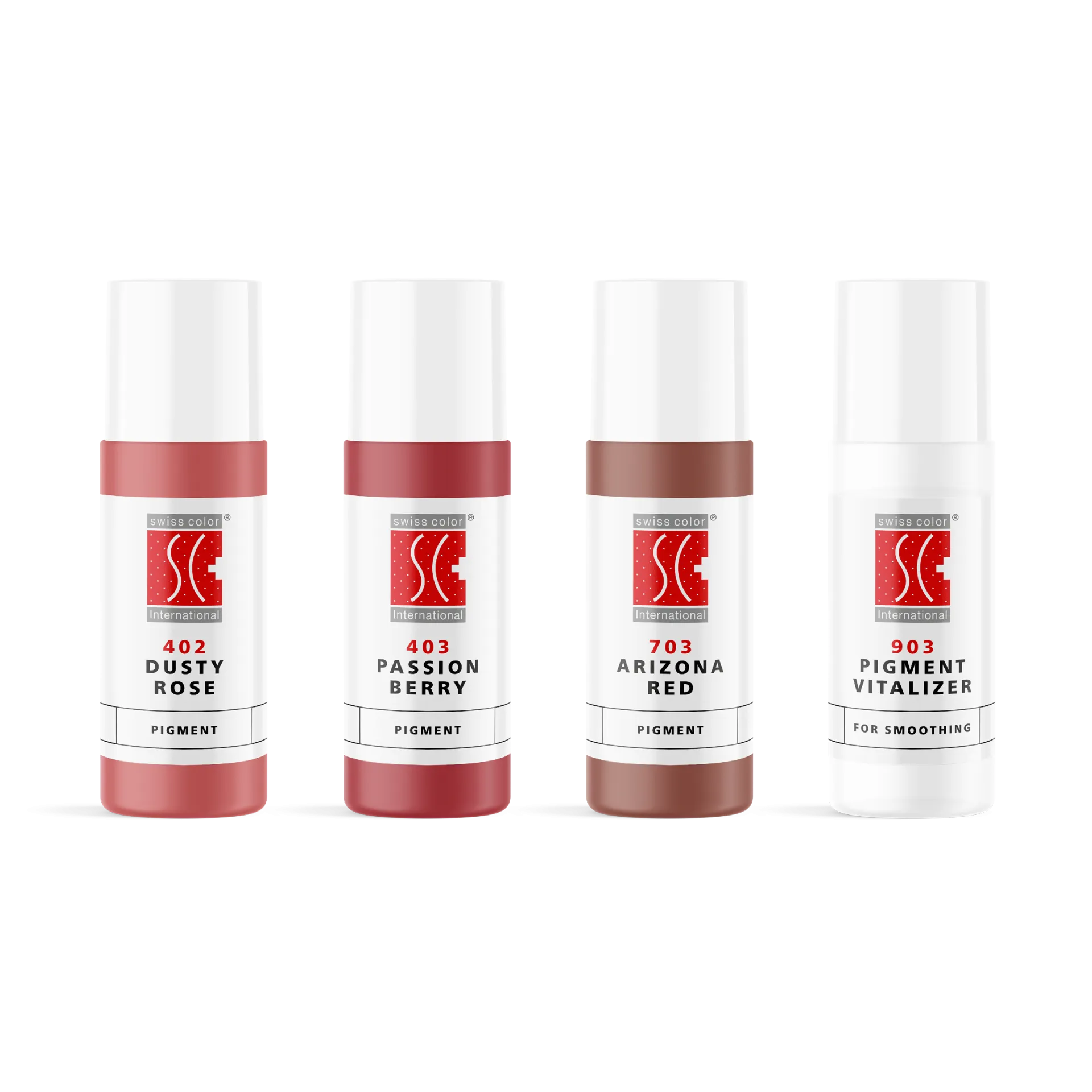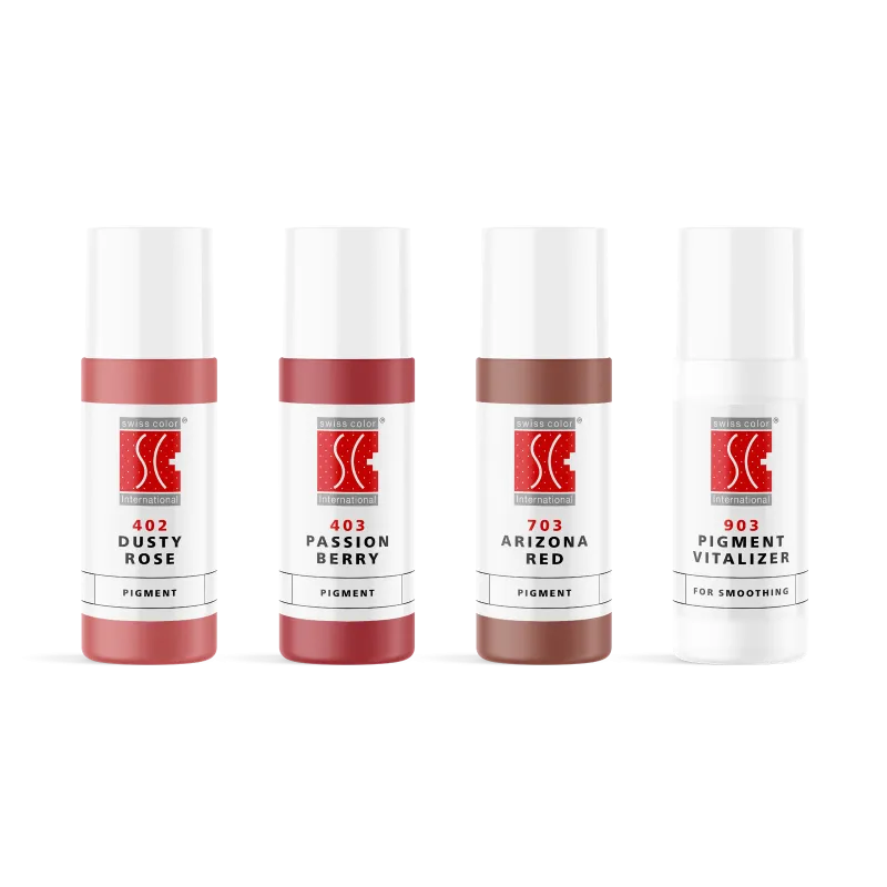 SWISS COLOR – LIP PIGMENTS SET - Комплект пигменти, който съдържа селекция от най-популярните ни нюанси за устни. Кремообразната консистенция позволява лесно и равномерно нанасяне на цвета. Идеален за модерни техники като Ombré Lips, Pixel, Powder или Pearl Lips. С Pigment Vitalizer се постига гладък блясък и нежна витализация на пигмента.