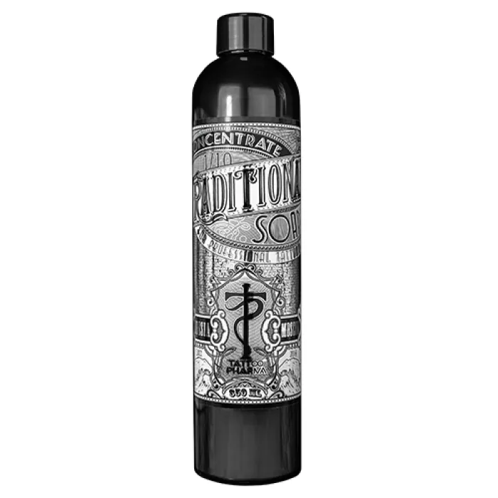 Традиционният зелен сапун е традиционен зелен сапун, който е съществена част от всяка татуировка, PMU или микропигментация. Продуктът се предлага като концентрат, разреден в съотношение 1:10. Така че можете да смесите до 3,5 литра разтвор от една бутилка.
