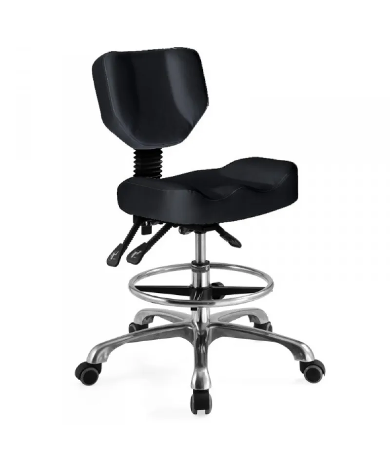 Brick е висококачествен стол с регулируема височина, облегалка и удобна поставка за крака, подходящ за всяко студио за татуировки или красота. Столът предоставя възможност за регулиране на ъгъла на облегалката, което ще оцените особено по време на дълги работни сесии. Разбира се, височината може да се регулира между 49 и 65 см. Долната част включва 5 колела и здрава стоманена рамка. Седалката и облегалката са покрити със здрава еко кожа, която е лесна за поддръжка и почистване от боя или други замърсявания.