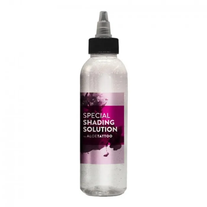 Special Shading Solution от Aloe Tattoo е специален разтвор за разреждане, който се нанася директно в чашата с мастило. Използвайки това решение, можете да смесвате нюанси според вашите собствени изисквания. Възможно е да се смесват както черни, така и цветни нюанси за всички техники и видове работа. Обем 120 мл.