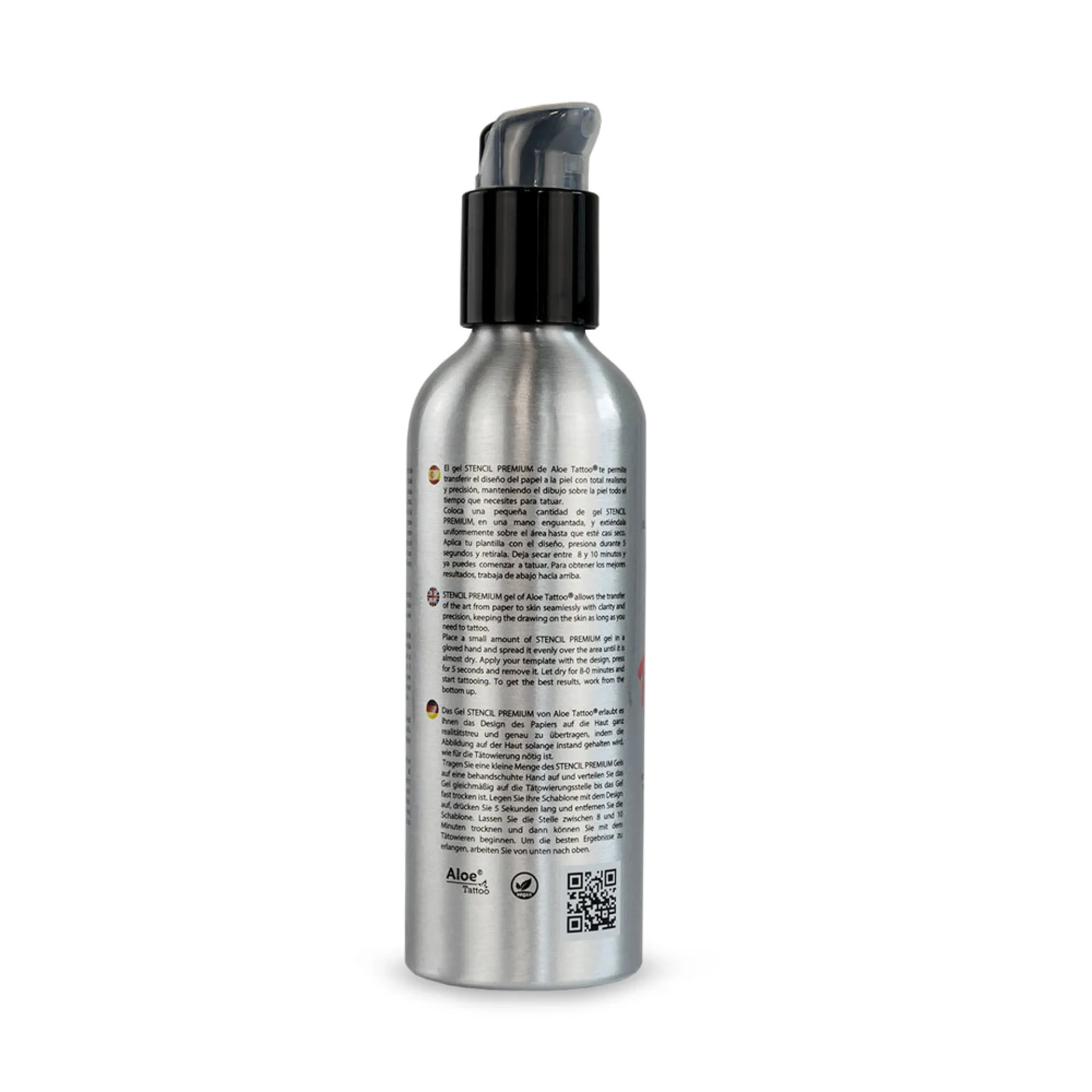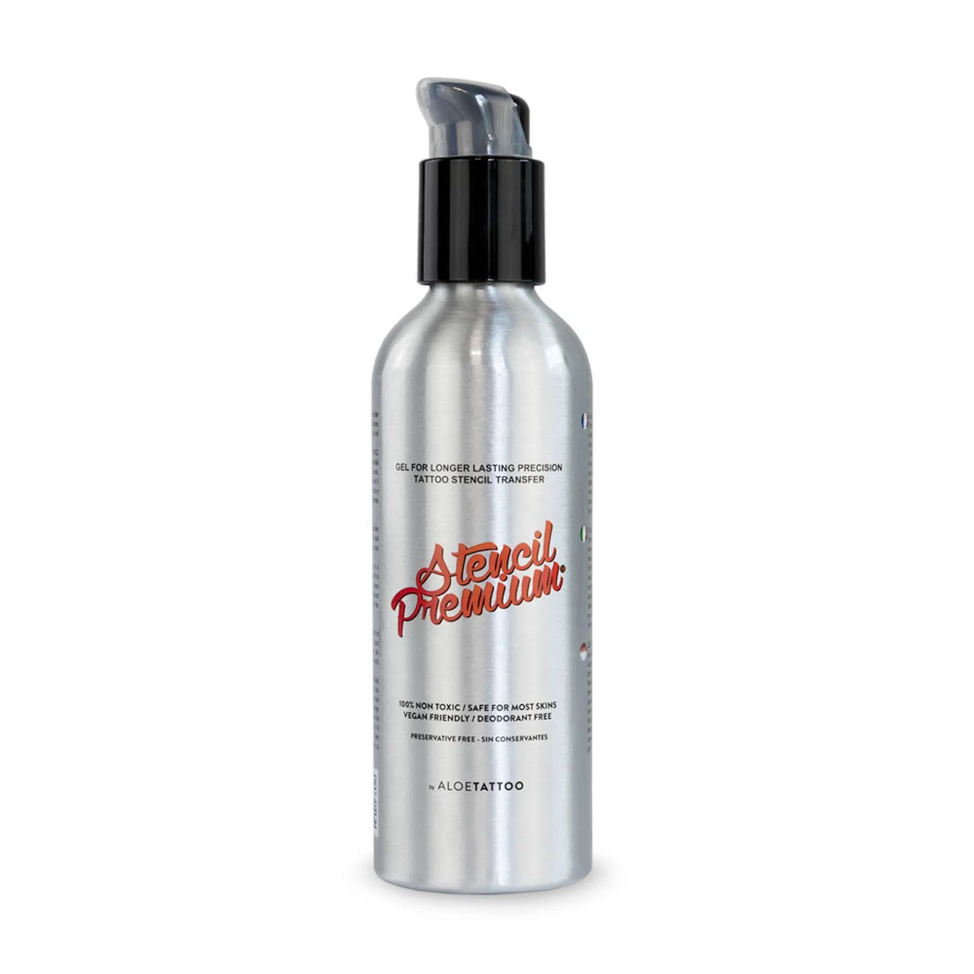 Stencil Premium е специален гел за пренасяне на мотиви върху кожа. Продуктът съдържа натурален екстракт от алое вера и е подходящ за всички типове кожа. В допълнение към естествения си състав, Stencil Premium предлага и висококачествени трансферни възможности. Една капка е повече от достатъчна за отпечатване на мотив с размери 15x15 см. След изсъхване, мотивът остава ярък и издръжлив, дори след редовно избърсване и измиване със зелен сапун.