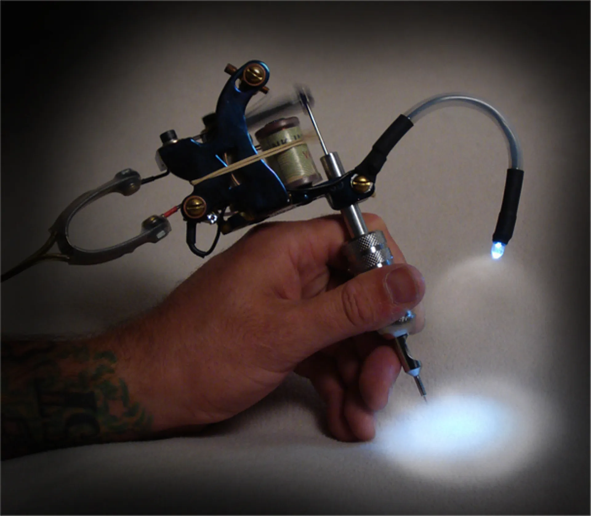 Практичен инструмент, подходящ за свързване към всяка машина за татуировки с бобина. Лампата е закрепена към горните и долните контактни винтове. Светлината се включва, когато натиснете педала. Чудесен инструмент за слабо осветени места. Светлината е гъвкава и може да се насочва според нуждите.