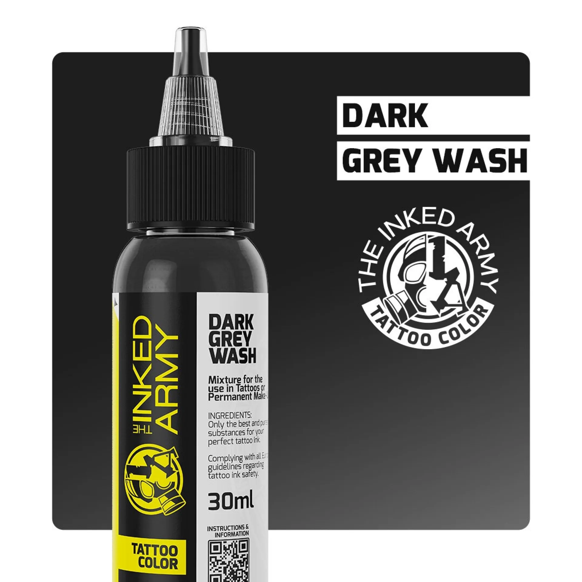 Серия GREYWASH е произведена с двойна пигментна формула – комбинация от железен оксид и черен въглен. Осигурява висока непрозрачност, ярки и консистентни резултати, както и допълнителна UV защита за дълготрайност на татуировката.