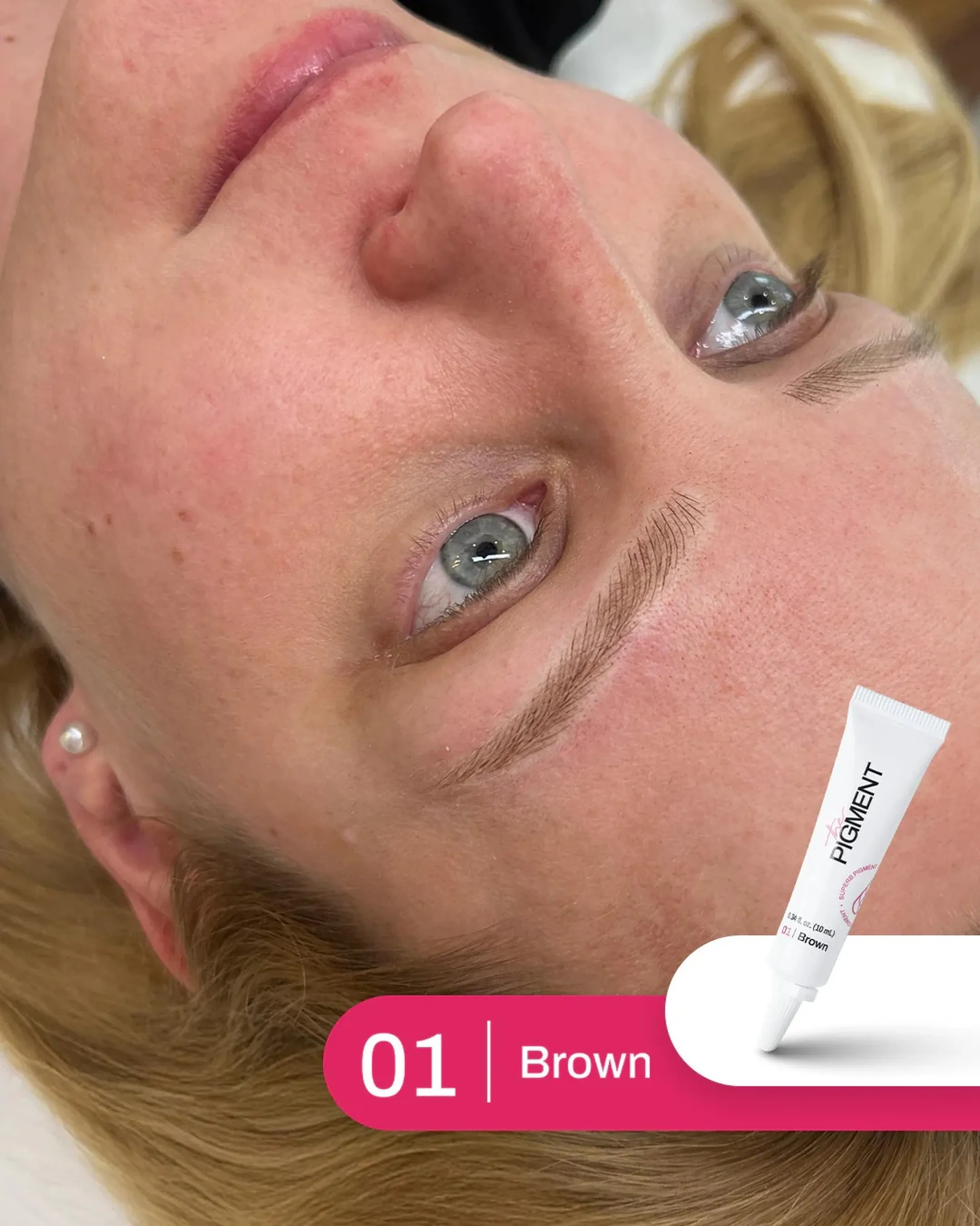 Brown 1 е топъл хибриден пигмент, специално разработен за светли типове кожа (Fitzpatrick 1–2) и руса коса. Оттенъкът представлява нежен, топъл кафяв цвят, който се слива естествено с кожата и създава естествен, мек, но добре дефиниран резултат.