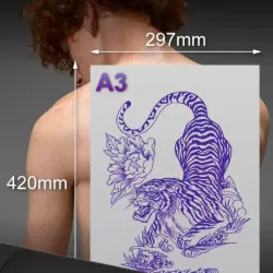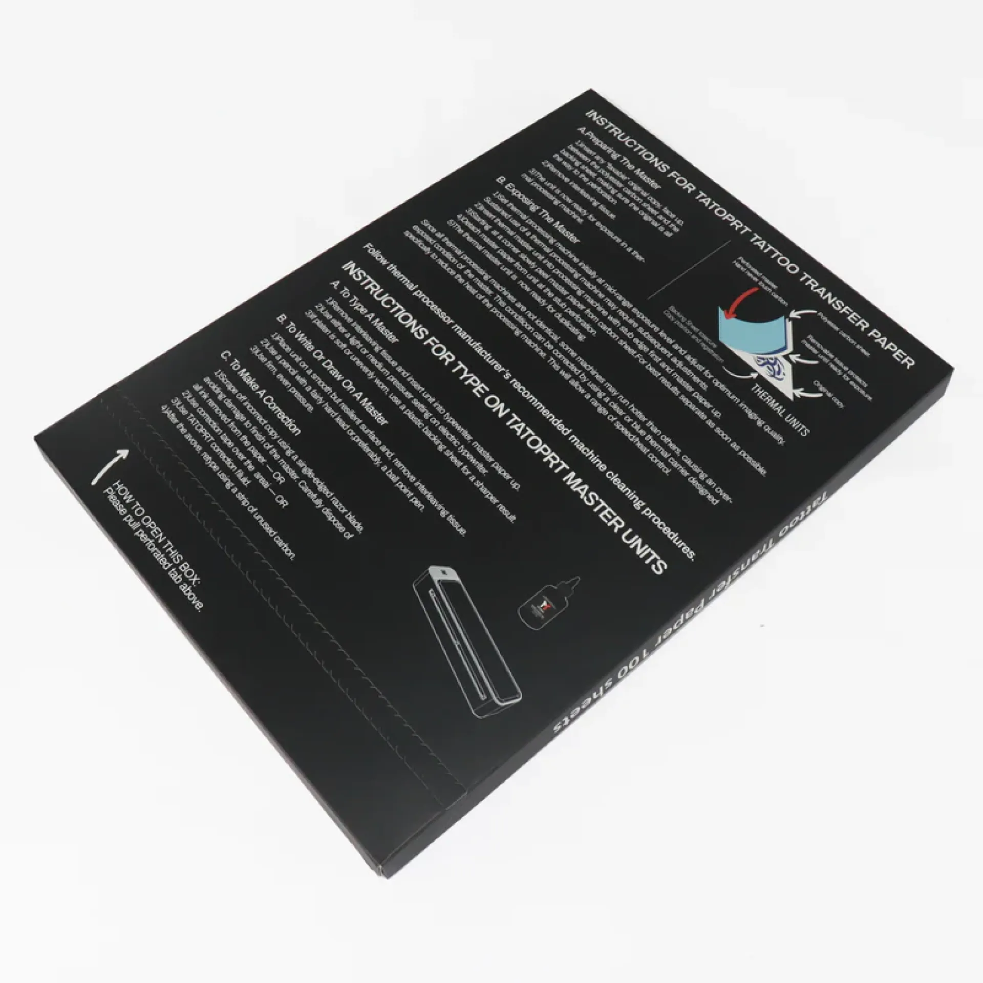 Хартията THUNDERLORD е подходяща за термопринтер, който може да печата до формат A3 (297 x 420 мм), което е идеално за по-големи дизайни, като например за бедро или гръб, но също така и за композиране на няколко мотива едновременно. Благодарение на тази висококачествена хартия, която позволява прецизно и детайлно пренасяне на вашите дизайни, ще създадете ясни и чисти контури. Тя е 3-слойна и след пренасяне на мотива върху кожата, той остава ясно видим през целия процес на татуиране. Хартията THUNDERLORD се предлага в опаковка от 100 броя.