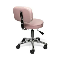Розовият въртящ се стол с облегалка съчетава комфорт, функционалност и изискан дизайн, което го прави идеален за тату студия и PMU салони. Меката, прошита седалка, покрита с висококачествена еко кожа в пастелнорозов цвят, осигурява удобство дори при продължителна работа и същевременно изглежда елегантно и модерно.