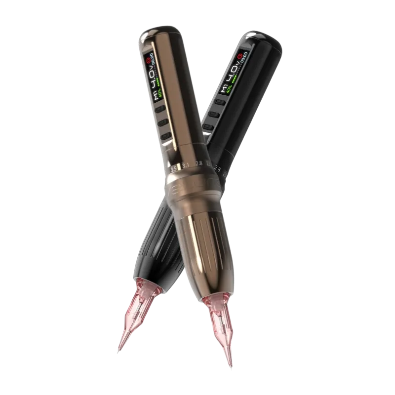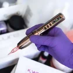 Тази машина е оборудвана с висококачествен безчетков мотор, който осигурява тиха работа, минимални вибрации и дълъг експлоатационен живот. Благодарение на регулируемия ход от 2.0 до 3.5 mm и издаването на иглата от 0 до 4.0 mm, тя предлага пълен контрол върху интензивността и дълбочината на пигментацията, като се адаптира към различни техники и типове кожа.