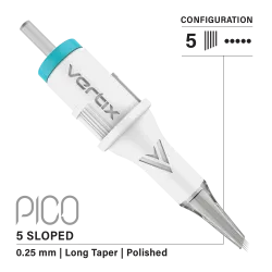 Впуснете се в света на PMU с новия Vertix Pico, отличаващ се с тънък, заострен дизайн, който предлага максимална видимост и перфектна точност във всеки пиксел. Иглените патрони PICO са изцяло преработени - с нова вътрешна система за превъзходна стабилност и намалени вибрации, така че можете да постигнете красиви резултати, като същевременно намалите увреждането на кожата.