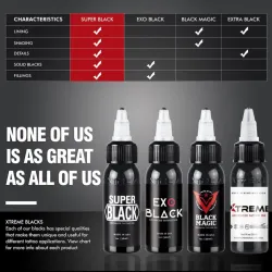 С богат опит в разработването и производството на пигменти за татуировки, Xtreme Ink USA произвежда мастила за татуировки с най-високо качество, които са по-безопасни за клиентите, потребителите и околната среда. Xtreme Ink е разработен в съответствие с най-новите разпоредби на Европейския съюз TATTOO REACH 2023.