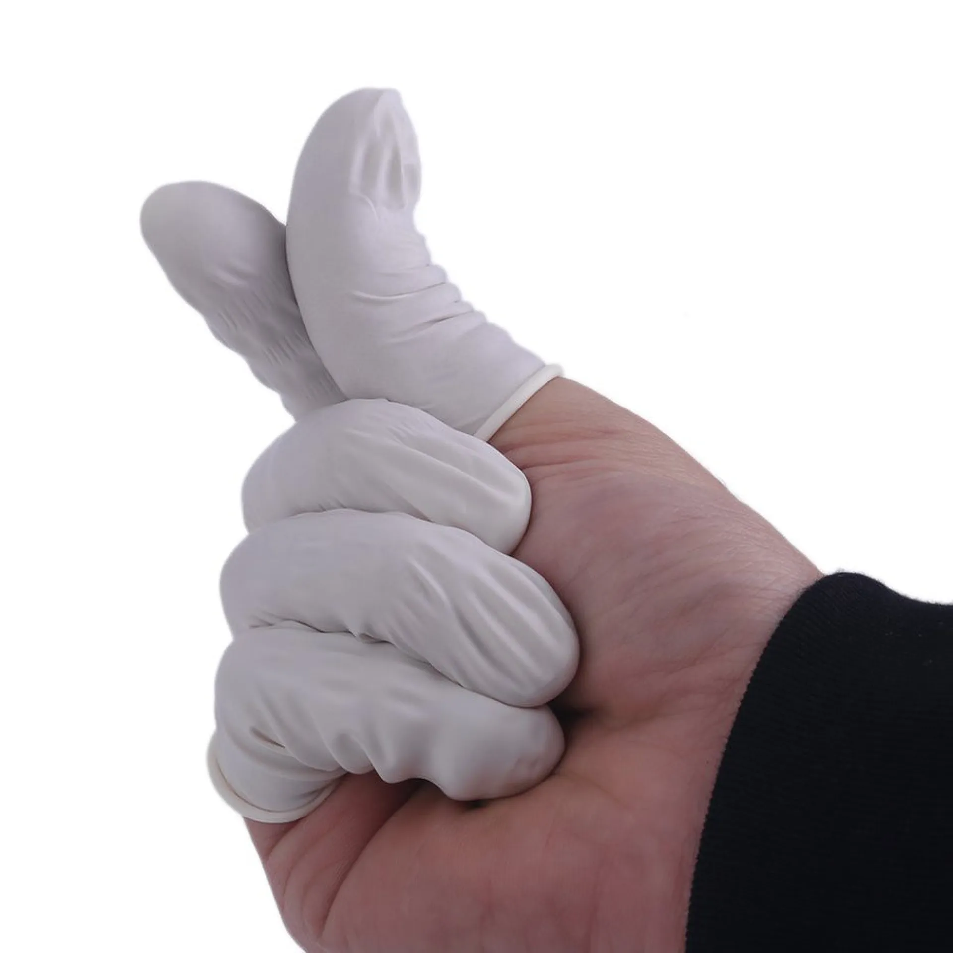 Опаковката съдържа 100 броя стерилни протектора за пръсти, които са подходящ заместител на ръкавици при нанасяне на кремове или други продукти. Изработени са от естествен латекс, без пудра.
