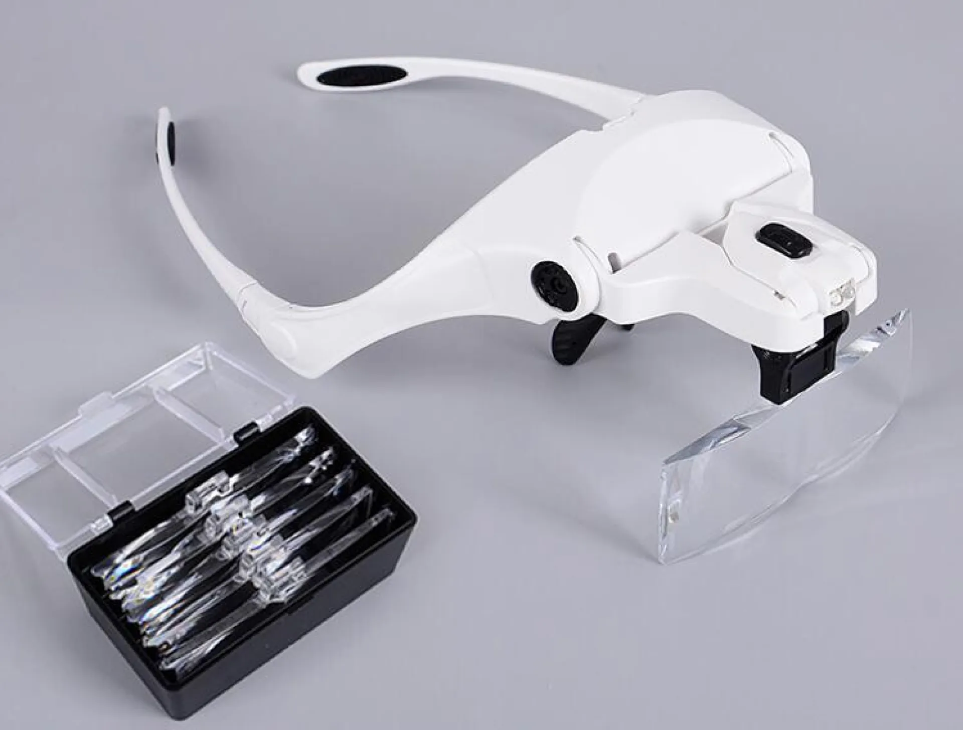 Очилата за козметици и PMU артисти. Имат две LED светлини отгоре и опция за поставяне на увеличителни лещи. Можете да ги намерите в пакет от 5 броя с различно увеличение и площ на показване.